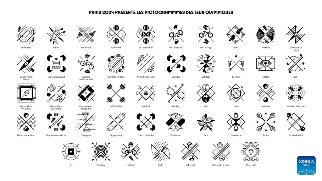 This handout image shows the sports pictograms for Paris 2024 Olympic Games officially unveiled by Paris 2024 Organizing Committee on Feb. 8, 2023. (Paris 2024 Organizing Committee/Handout via Xinhua)