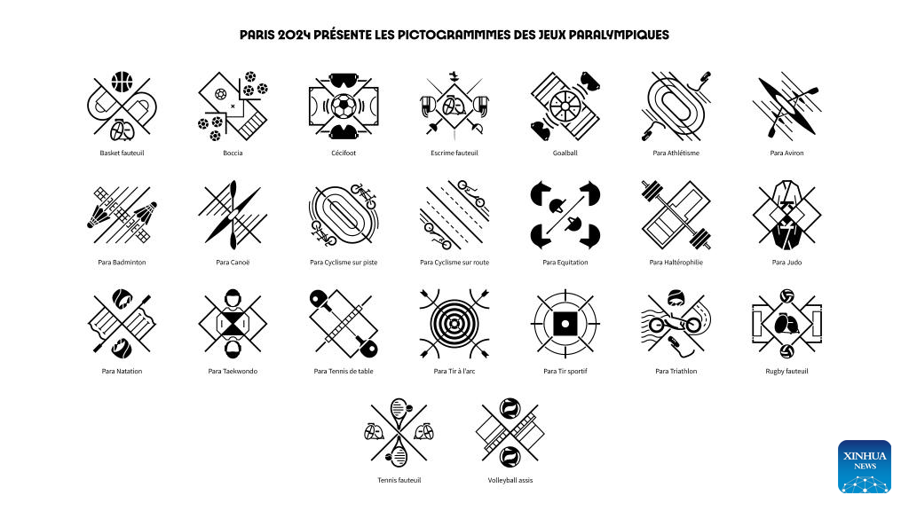 This handout image shows the sports pictograms for Paris 2024 Paralympic Games officially unveiled by Paris 2024 Organizing Committee on Feb. 8, 2023. (Paris 2024 Organizing Committee/Handout via Xinhua)