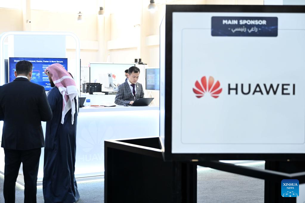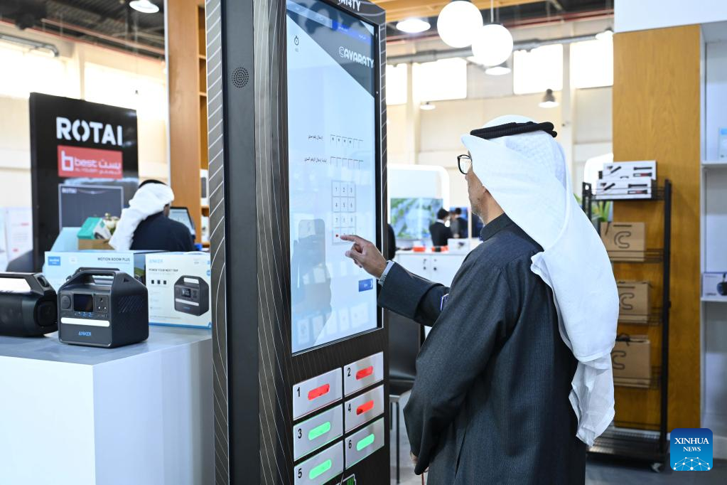 A man visits Kuwait International Technology Exhibition in Hawalli Governorate, Kuwait, on Feb. 8, 2023. Kuwait International Technology Exhibition with the participation of over 80 entities kicked off here on Wednesday. (Photo by Asad/Xinhua)