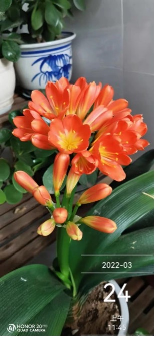 Kaffir lily planted by He Lihua, wife of Zhu Maojin, a 75-year-old resident of the Caochangsitiao Hutong in Caochang community, Qianmen street, Dongcheng District of Beijing, is in full bloom in the family's courtyard in the hutong. (Photo courtesy of He Lihua)