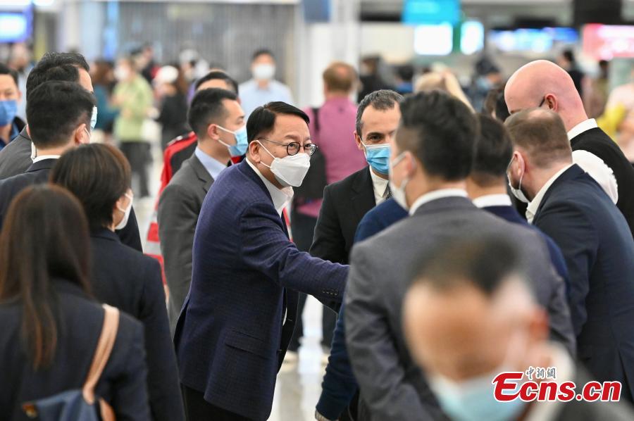 Eric Chan Kwok-ki sees the rescue team off at the Hong Kong International Airport, Feb. 8, 2023. (Photo: China News Service/Li Zhihua)