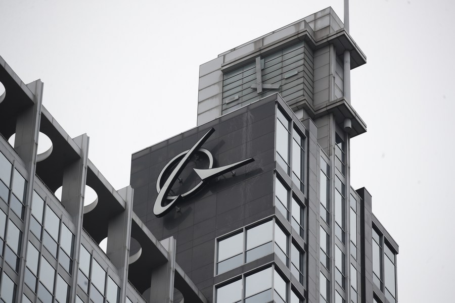 Photo taken on March 13, 2019 shows the Boeing logo at its headquarters in downtown Chicago, the United States. (Xinhua/Joel Lerner)