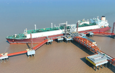 A 205,000-cubic-meter LNG carrier berths at the LNG terminal of China National Petroleum Corporation in Rudong county, east China’s Jiangsu Province. (Photo/Xu Congjun)