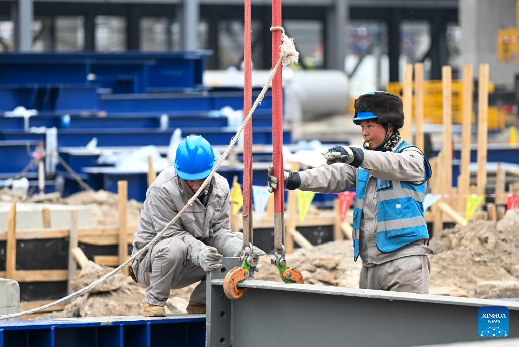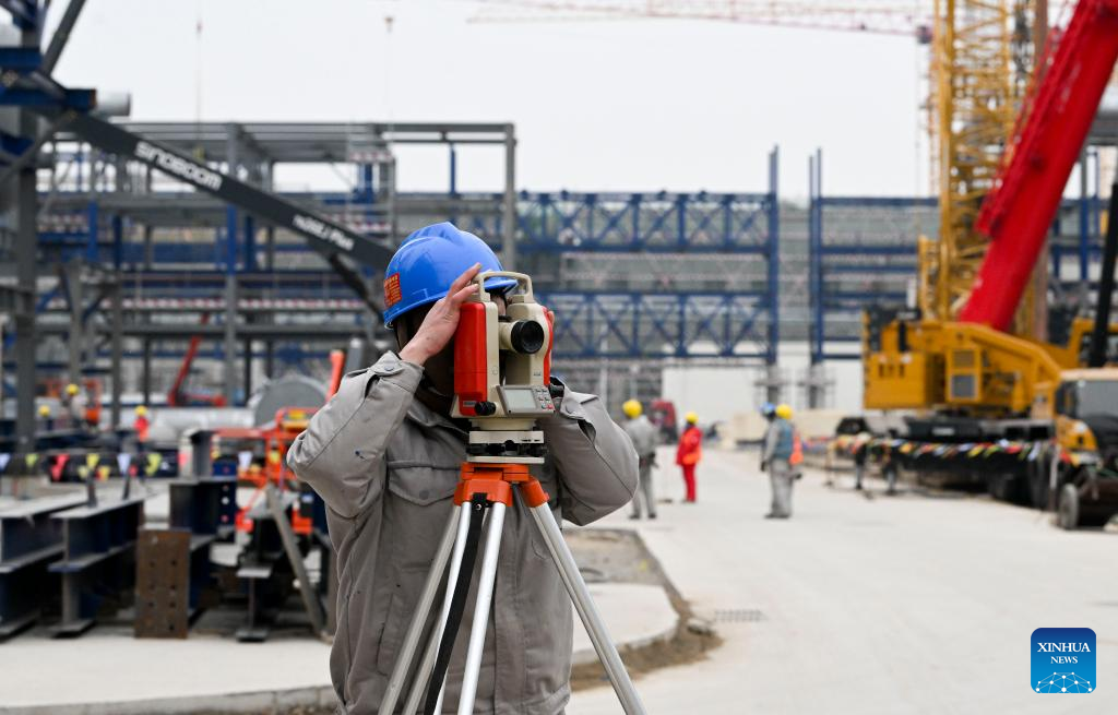 A constructor works at the construction site of an ethylene project in north China's Tianjin, Feb. 9, 2023. The total investment of the ethylene project, a key project in the 14th Five-Year Plan period (2021-2025), is more than 30 billion yuan (about 4.4 billion U.S. dollars). (Xinhua/Sun Fanyue)