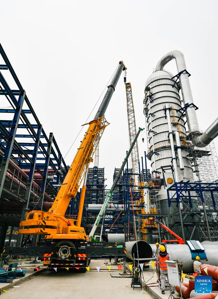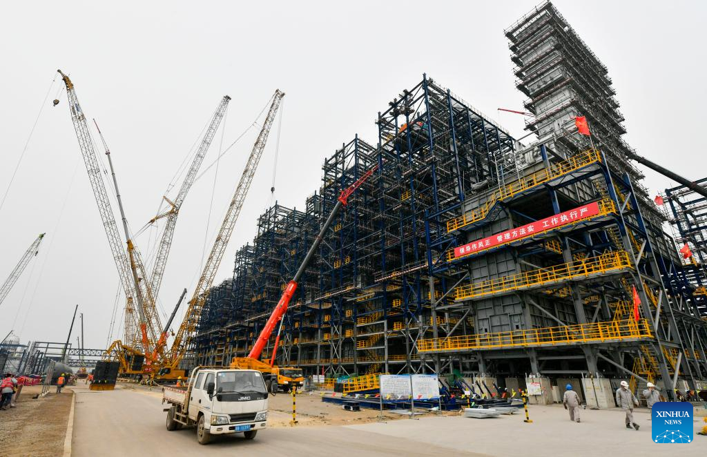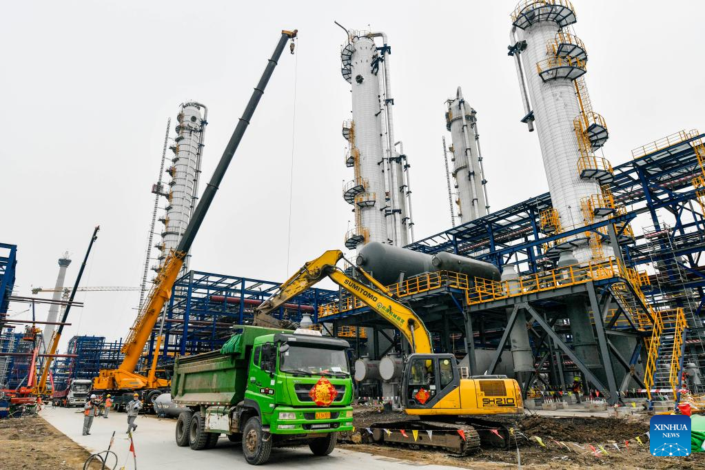 This photo shows the construction site of an ethylene project in north China's Tianjin, Feb. 9, 2023. The total investment of the ethylene project, a key project in the 14th Five-Year Plan period (2021-2025), is more than 30 billion yuan (about 4.4 billion U.S. dollars). (Xinhua/Sun Fanyue)