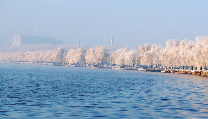 In winter, mists are always seen on the Yitong River, the mother river of Changchun, and crystal-clear rime ice is formed on tree branches. They constitute a pure and clean picture together with the vast snow-covered ground on the banks of the river.