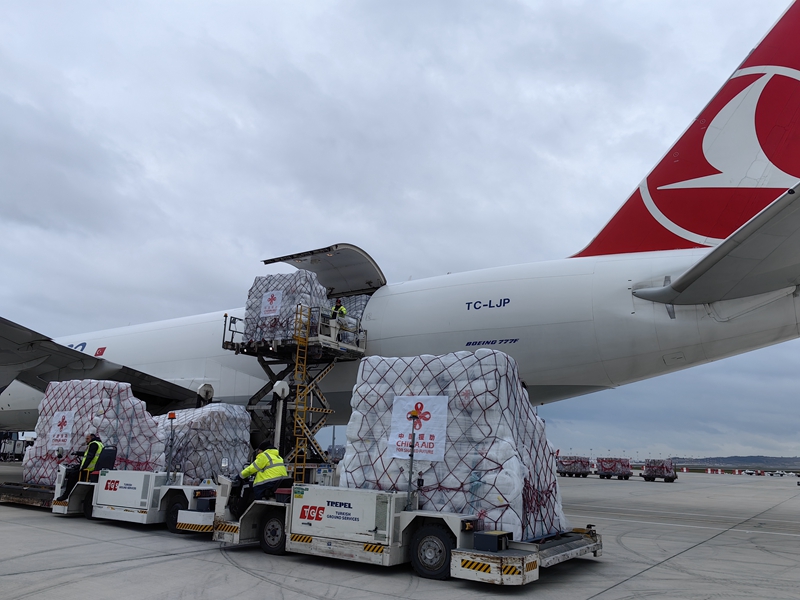 China's disaster relief supplies arrive at Istanbul Airport in Türkiye