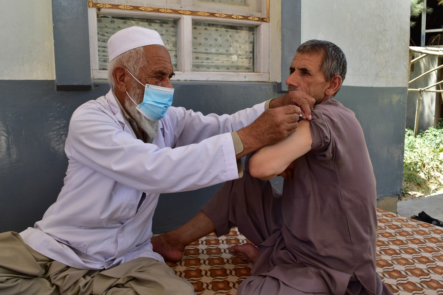 A man receives a dose of COVID-19 vaccine in Jawzjan province, Afghanistan, July 17, 2022. (Photo by Zakrullh Yazdani/Xinhua)