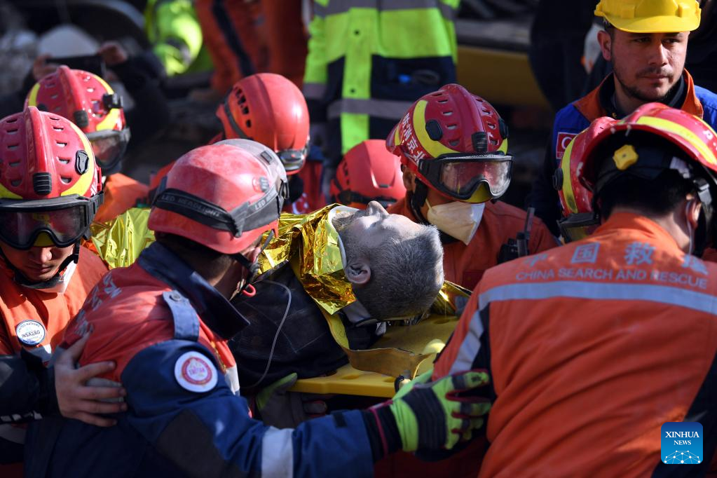A survivor was rescued from the debris in Antakya, Trkiye, by Chinese rescuers on Sunday afternoon.