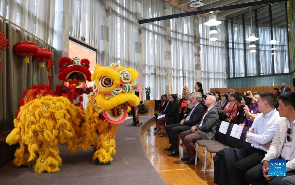 People watch a performance during an event celebrating the Chinese Lunar New Year in Wellington, New Zealand, on Feb. 13, 2023. An event celebrating the Chinese Lunar New Year was held at the New Zealand parliament on Monday. (Photo by Meng Tao/Xinhua)