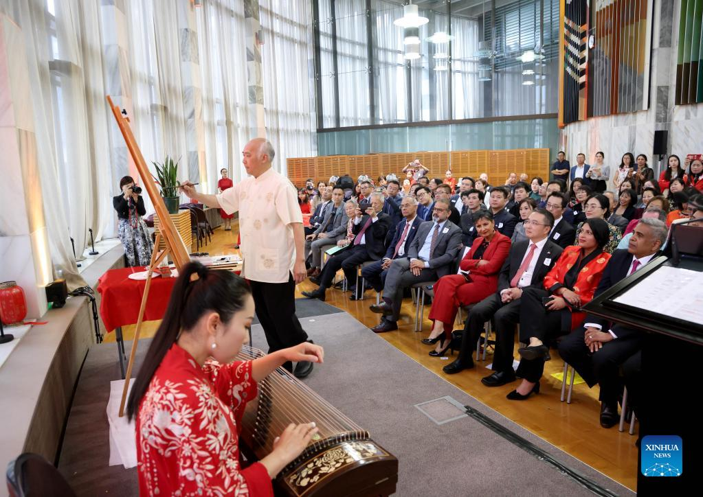 People perform during an event celebrating the Chinese Lunar New Year in Wellington, New Zealand, on Feb. 13, 2023. An event celebrating the Chinese Lunar New Year was held at the New Zealand parliament on Monday. (Photo by Meng Tao/Xinhua)