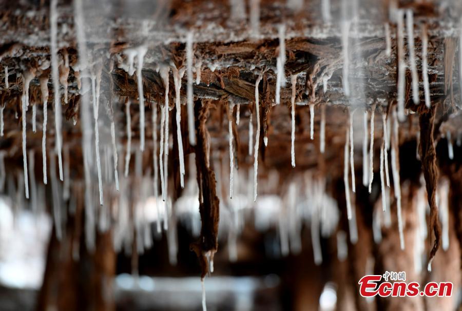 Crystallized salt hangs on salt pans in Mangkam County, Qamdo, southwest China's Tibet Autonomous Region, Feb. 13, 2023. (Photo: China News Service/Li Lin)