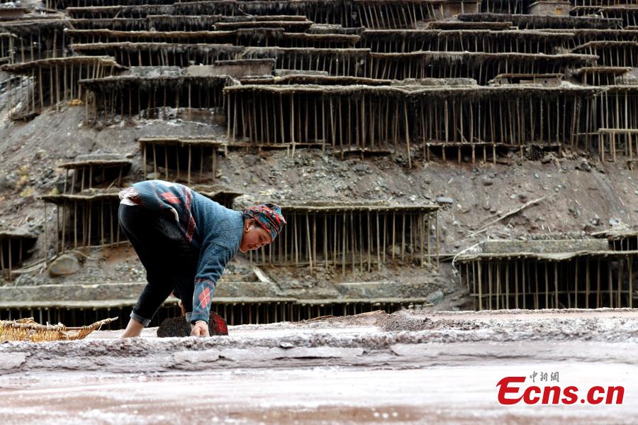 Villagers work in salt pans in Mangkam County, Qamdo, southwest China's Tibet Autonomous Region, Feb. 13, 2023. (Photo: China News Service/Li Lin)