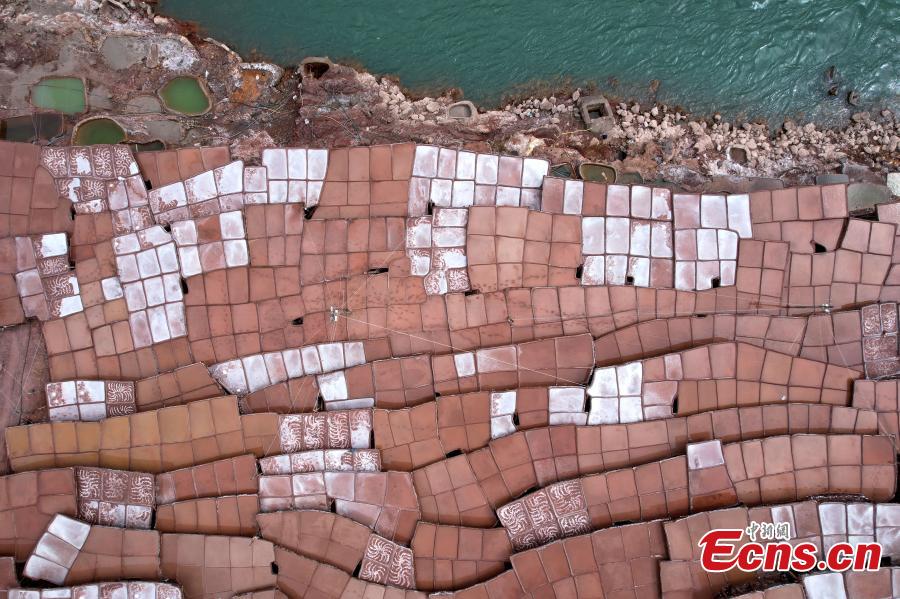 Aerial view shows salt pans in Mangkam County, Qamdo, southwest China's Tibet Autonomous Region, Feb. 13, 2023. (Photo: China News Service/Li Lin)