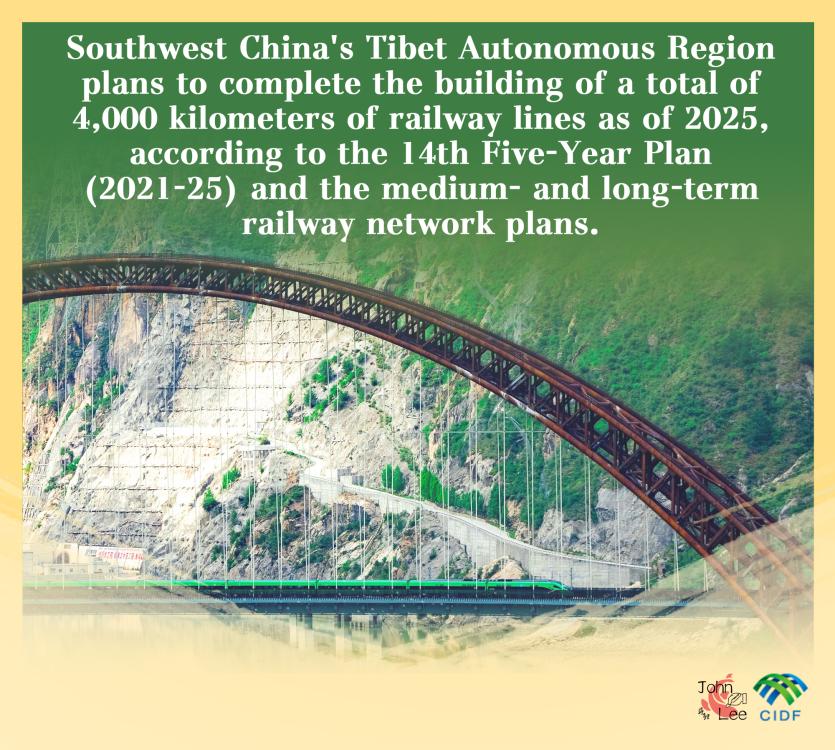Southwest China's Tibet Autonomous Region plans to complete the building of a total of 4,000 kilometers of railway lines as of 2025, according to the 14th Five-Year Plan (2021-25) and the medium- and long-term railway network plans .