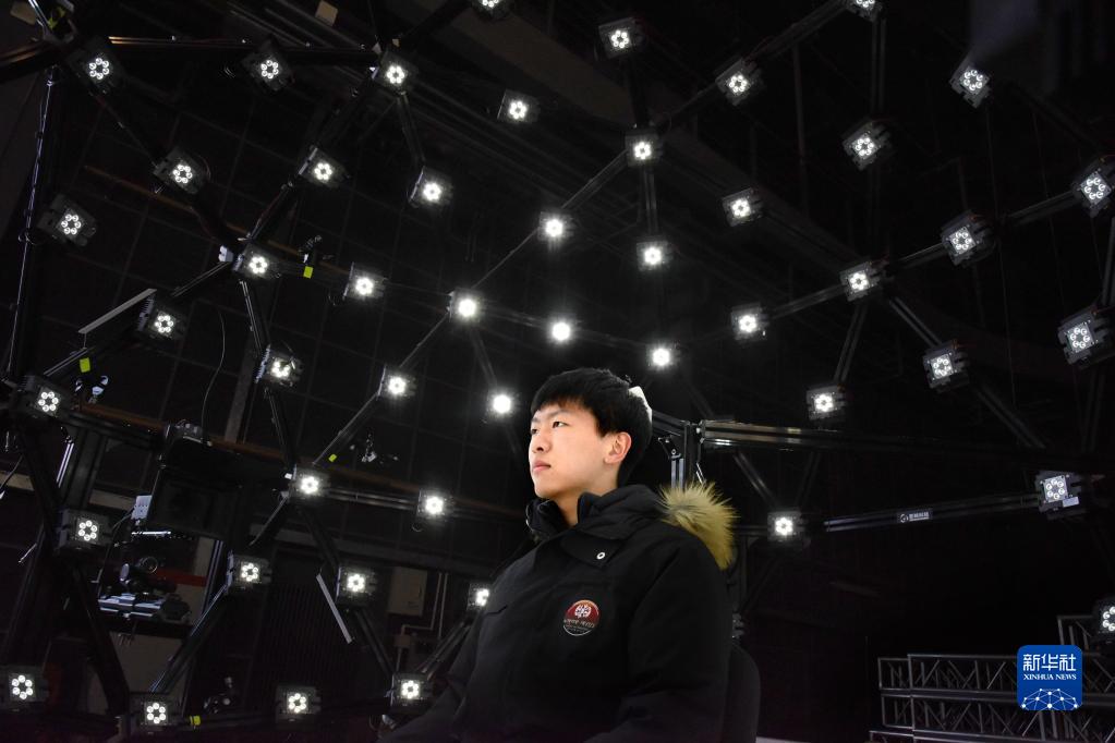 A staff member performs microexpression capture technologies at the Qingdao Oriental Movie Metropolis, Feb. 8, 2023. (Photo/Xinhua)