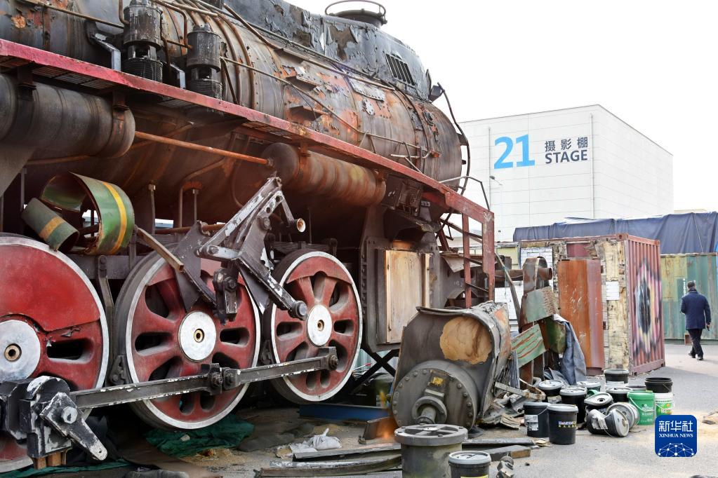 Photo shows a prop locomotive at the Qingdao Oriental Movie Metropolis, Feb. 8, 2023. (Photo/Xinhua)