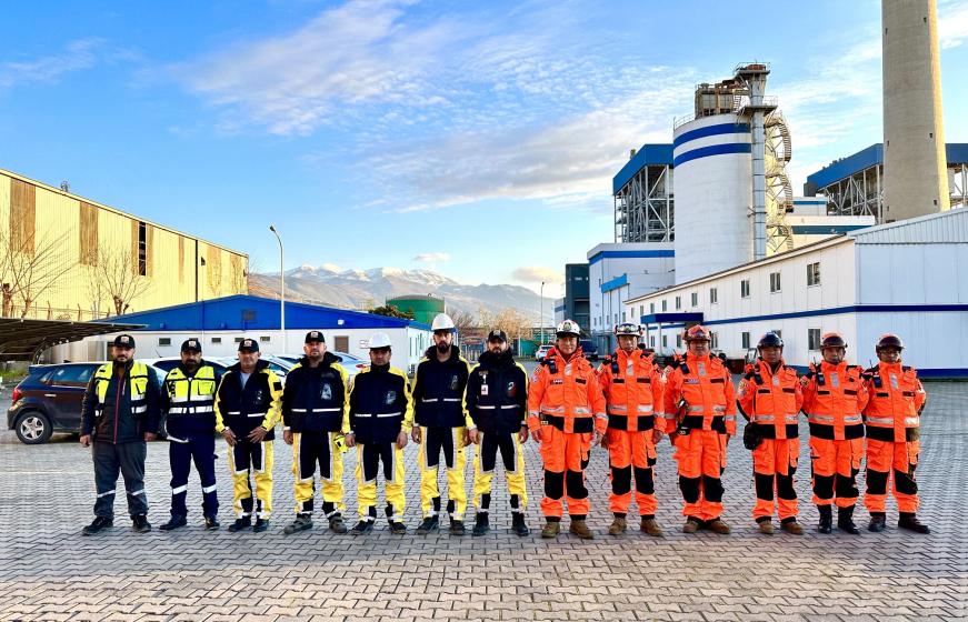 Members of the rescue team of Ramunion pose for a group photo at a frontline camp in ?skenderun, Hatay Province, Türkiye, Feb. 8. (Photo courtesy of the rescue team of Ramunion)