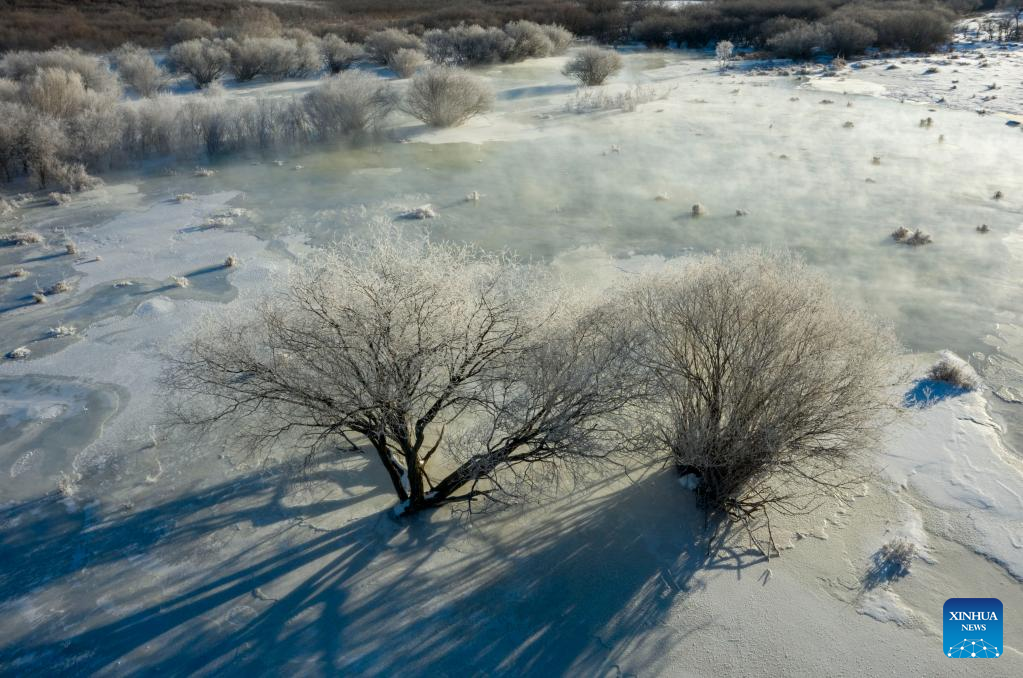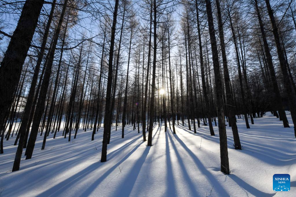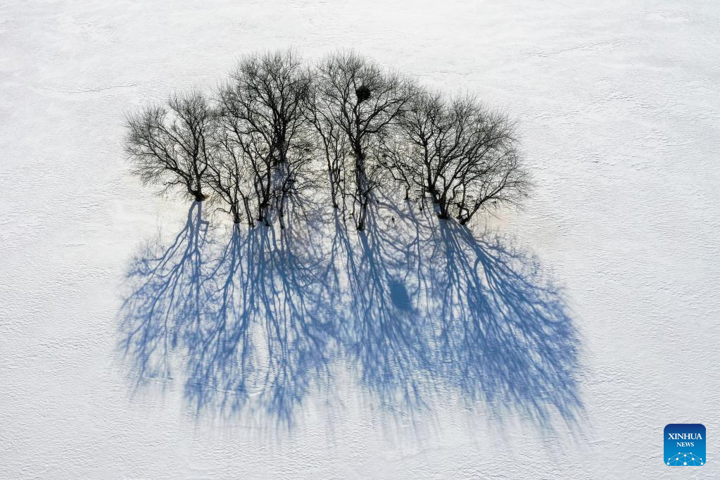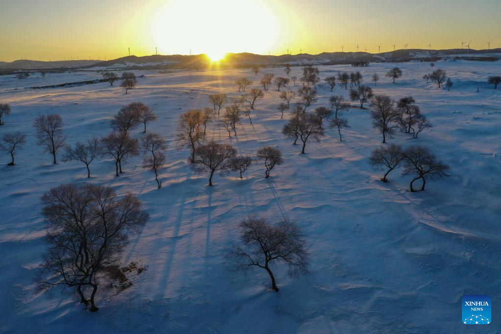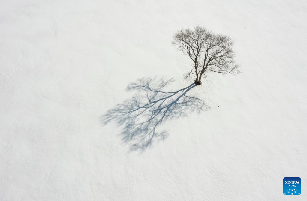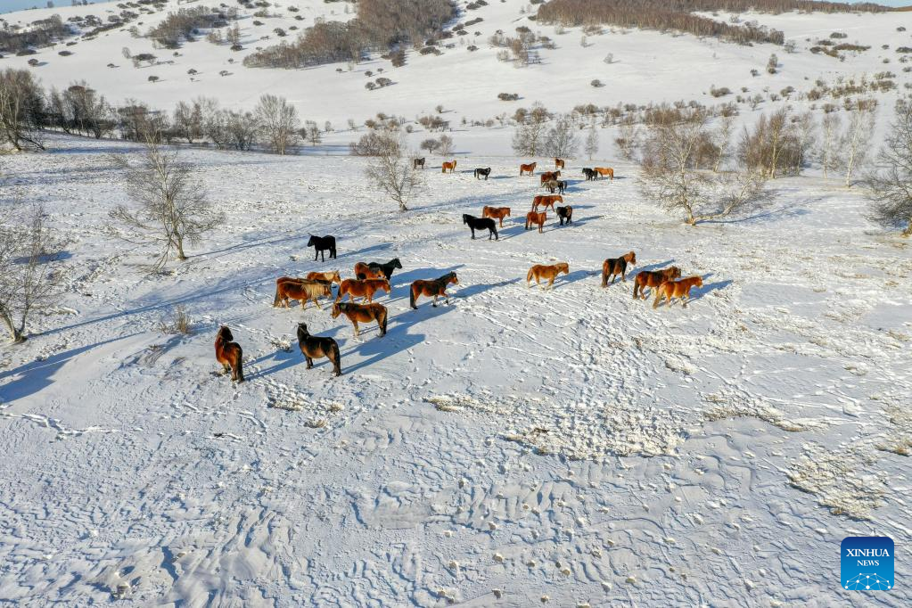 This photo taken on Feb. 14, 2023 shows the winter scenery of Yudaokou pasture in Chengde, north China's Hebei Province. (Photo by Wang Liqun/Xinhua)