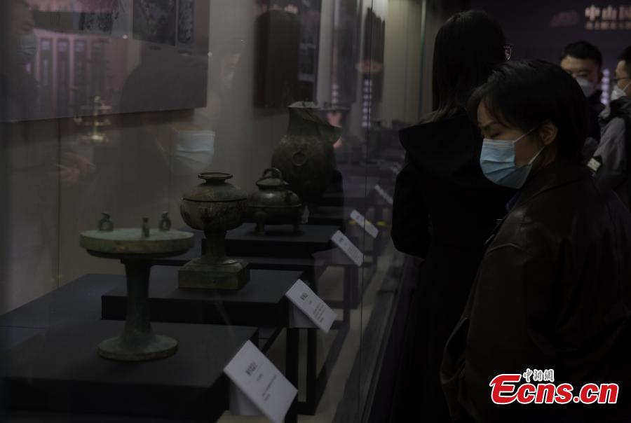 Cultural relics of Zhongshan State (414B.C.-296B.C.) in the Warring States period (475B.C.-221B.C.) are on display in Three Gorges Museum in Chongqing. Feb. 14, 2023. (Photo: China News Service/Zhou Yi)