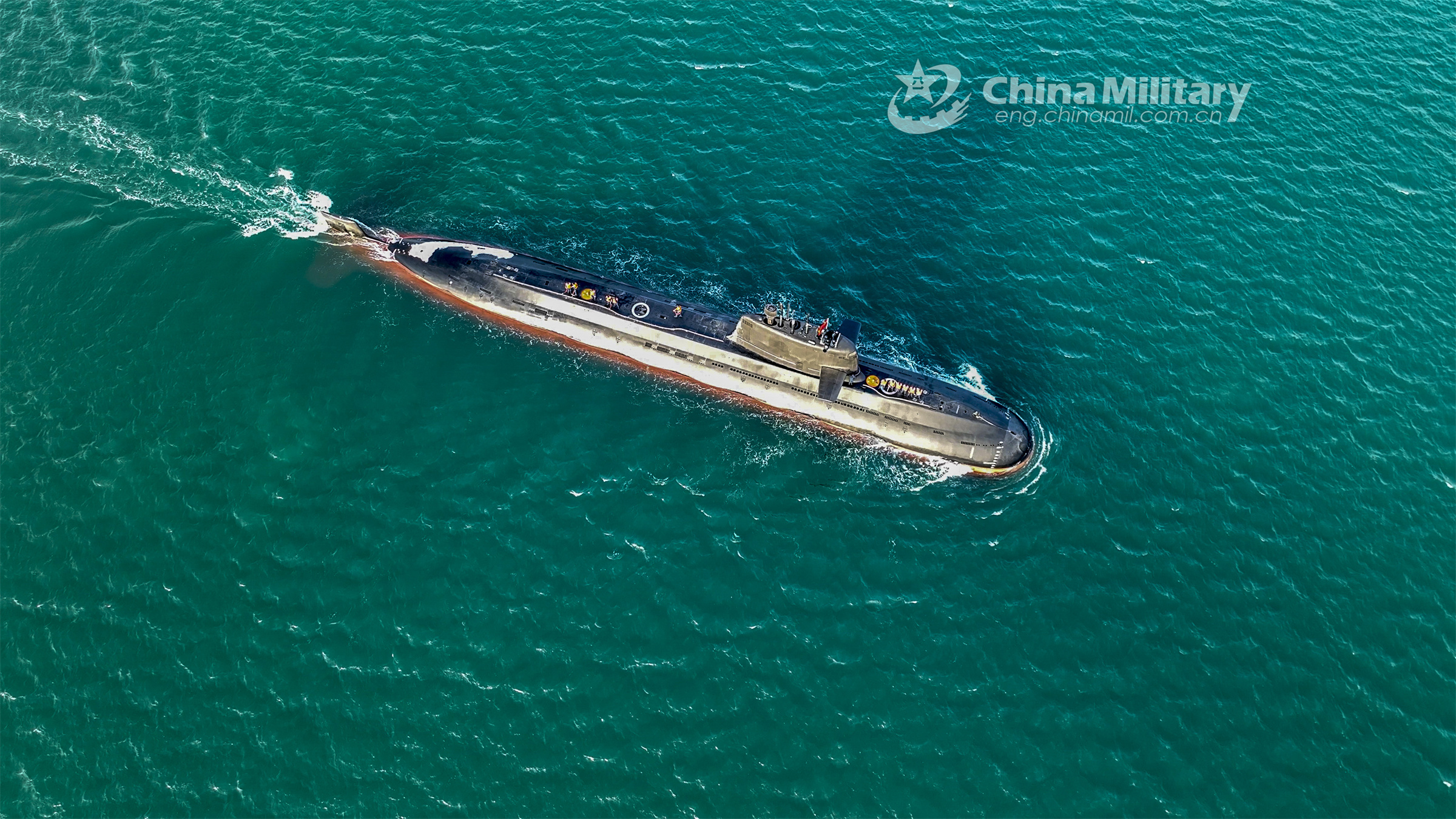 A submarine attached to a submarine flotilla with the navy under the PLA Northern Theater Command steams in the sea during a recent day-and-night maritime combat training exercise. (eng.chinamil.com.cn/Photo by Wu Haodong)