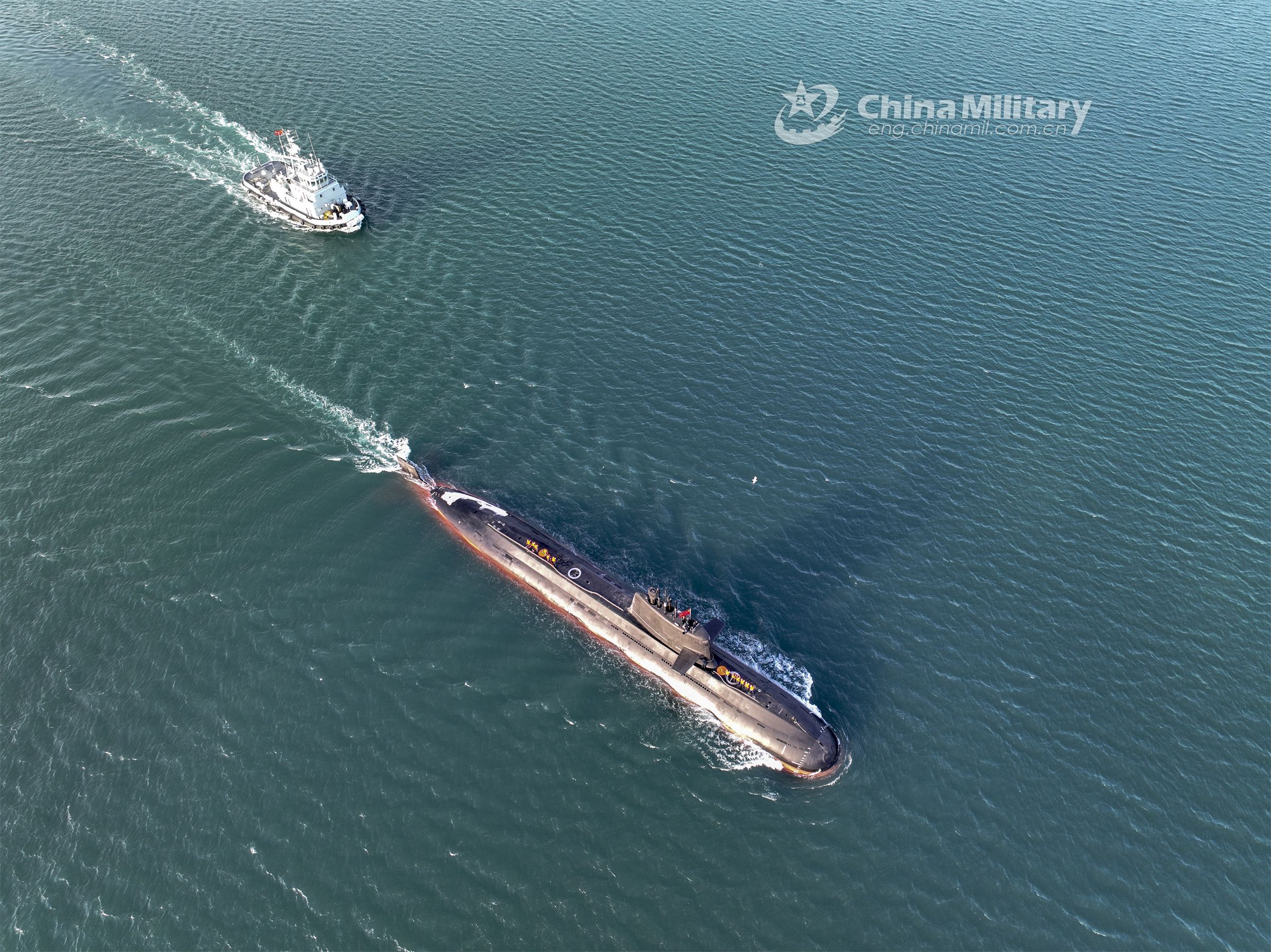 A submarine attached to a submarine flotilla with the navy under the PLA Northern Theater Command steams in the company of a towboat during a recent day-and-night maritime combat training exercise. (eng.chinamil.com.cn/Photo by Wu Haodong)