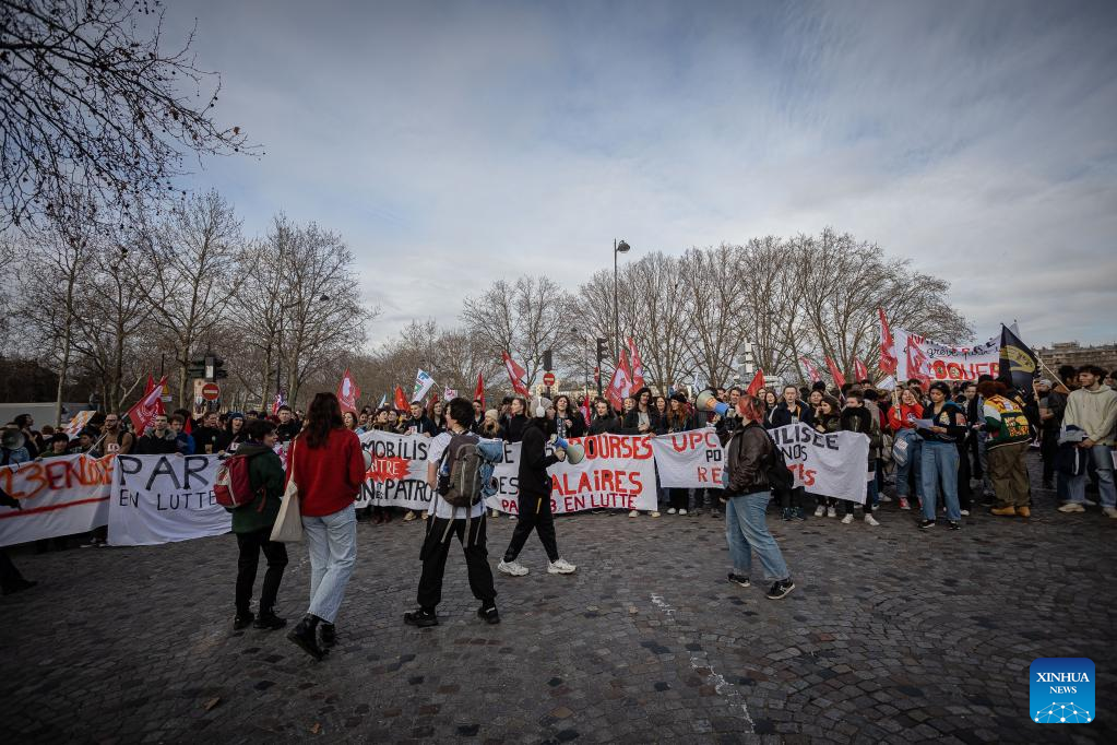 However, compared with the four general strikes held since Jan. 19, Thursday's nationwide demonstration had the lowest participation rate, given the fact that a large part of France is on school holidays.