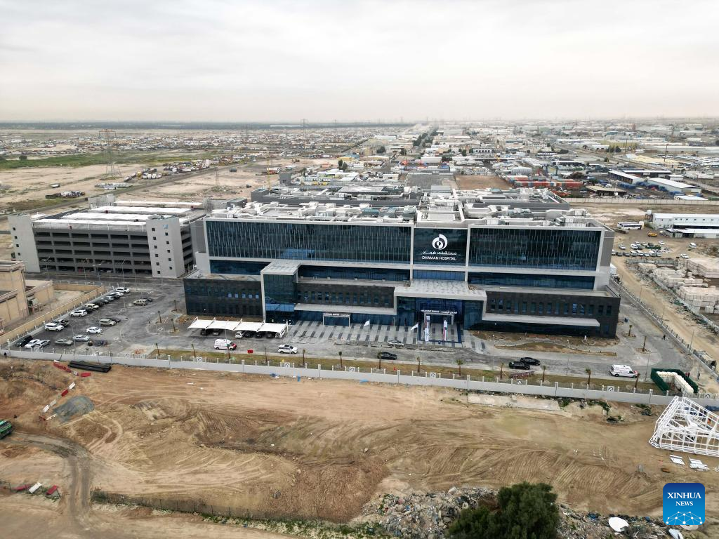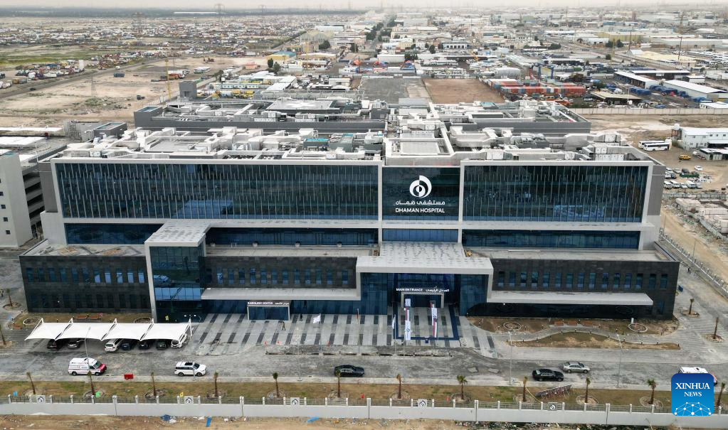 This aerial photo taken on Feb. 15, 2023 shows the main building of the Kuwait Health Assurance Hospital in Jahra Governorate, Kuwait. (Photo by Asad/Xinhua)