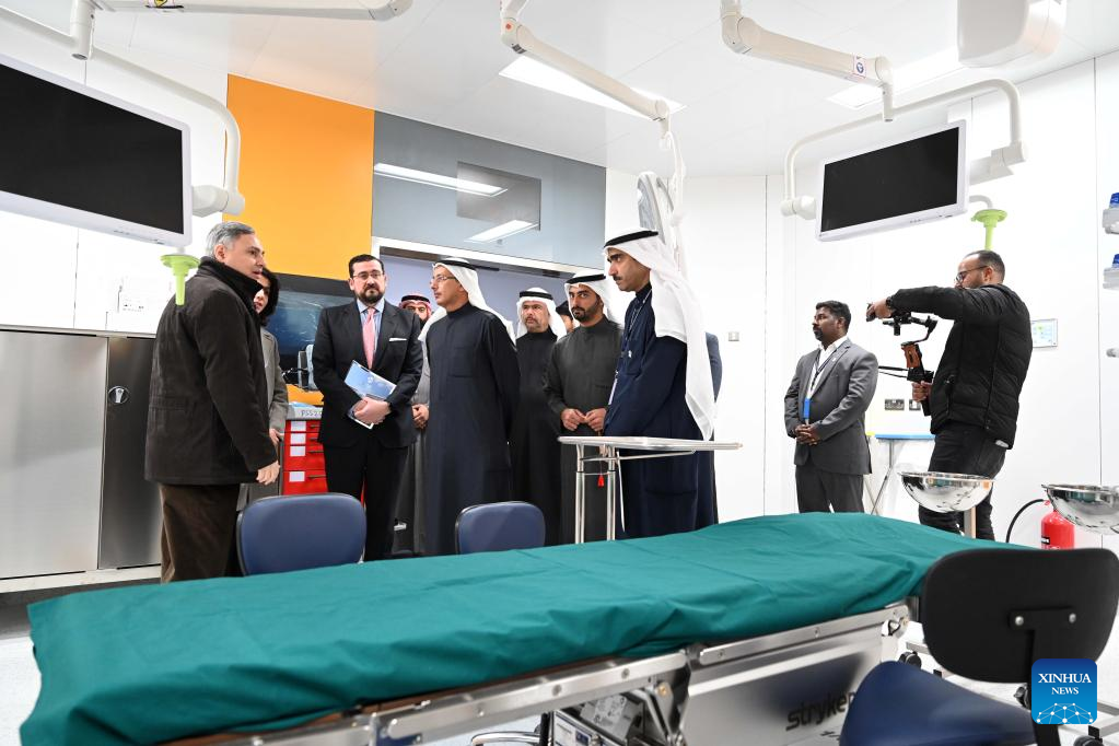 Guests visit the Kuwait Health Assurance Hospital after its soft opening ceremony in Jahra Governorate, Kuwait, on Feb. 15, 2023. (Photo by Asad/Xinhua)
