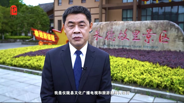 Hu Run, director of the Culture, Radio, Television and Tourism Bureau of Yilong county, southwest China's Sichuan Province, introduces local cultural and tourism resources in a video. (Photo/Sichuan Observation)