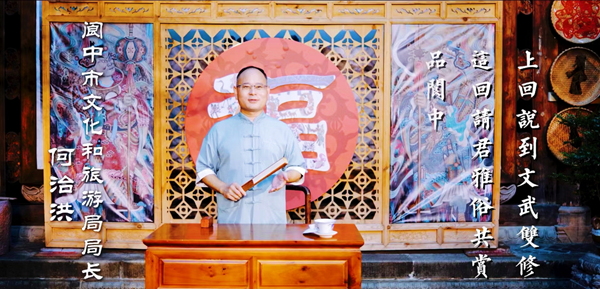 He Zhihong, director of the Culture, Radio, Television and Tourism Bureau of Langzhong city, southwest China's Sichuan Province, introduces local cultural and tourism resources in a video. (Photo/Sichuan Observation)