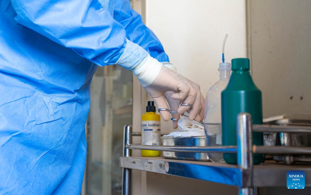 Xu Yan, a member of the 19th Chinese medical team dispatched to the Central African Republic, prepares medical equipment at a hospital in Bangui, Central African Republic, Feb. 13, 2023. The 19th Chinese medical team dispatched to the Central African Republic arrived in the country in June 2022. Since then, team members have been on China's international medical aid mission here, providing services for local people. (Xinhua/Li Yahui)
