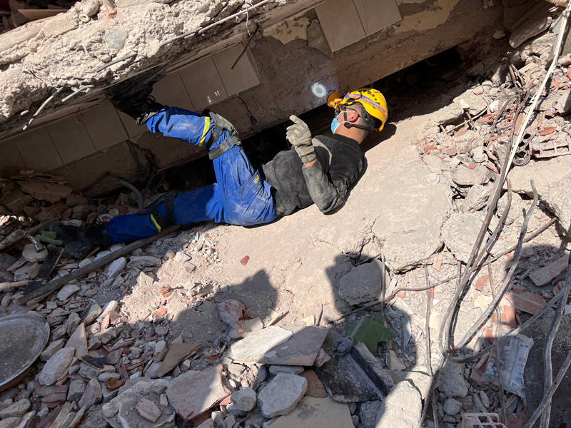 A member of the Blue Sky Rescue Team carries out rescue work in Türkiye. (Photo courtesy of the Blue Sky Rescue Team)