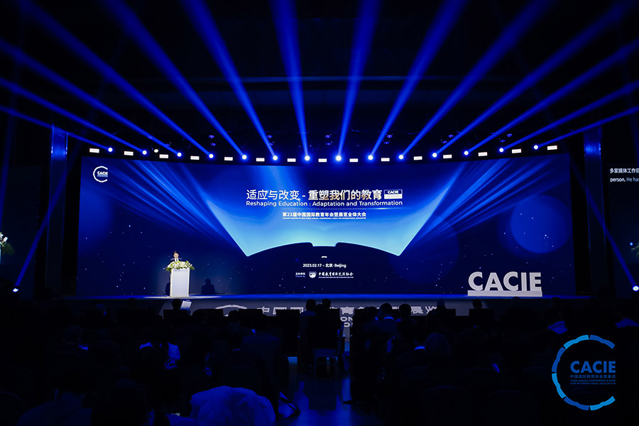 Held under the theme of “Reshaping Education: Adaption and Transformation”, the Plenary Session of the 23rd China Annual Conference & Expo for International Education (CACIE) was held both online and offline at the Beijing International Conference Center on February 17, 2023.