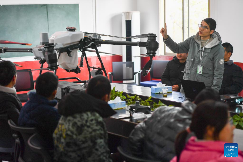 Locals in C China's Fu'an Village receive drone operation training for spring ploughing