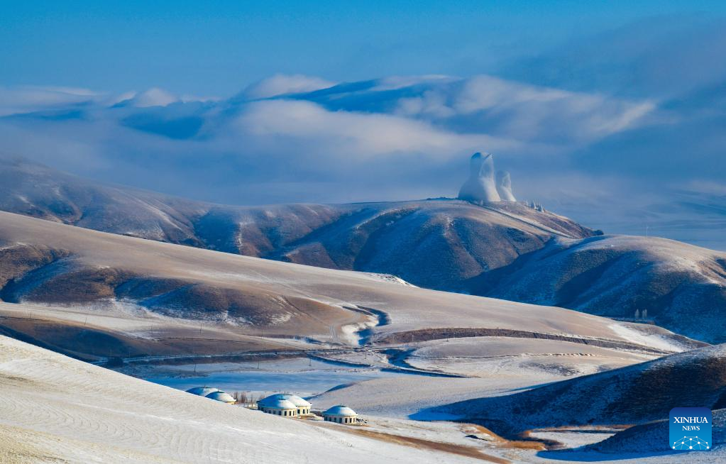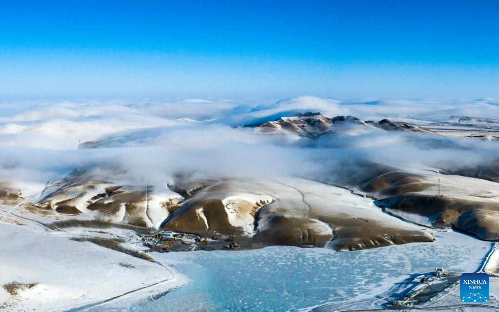 This photo taken on Feb. 18, 2023 shows a snow-covered grassland in Holin Gol, north China's Inner Mongolia Autonomous Region. (Photo by Wang Zheng/Xinhua)