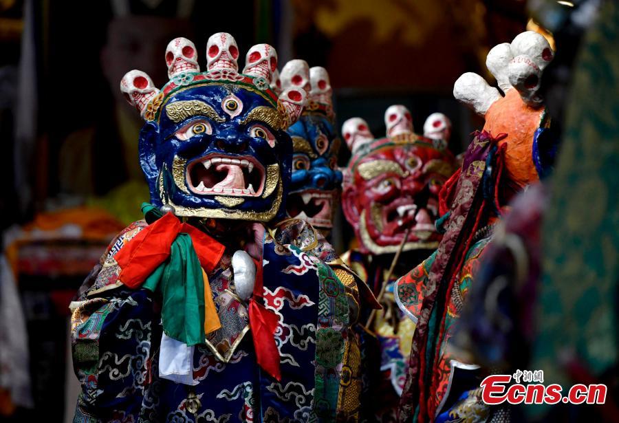Monks perform Cham dance to greet the Tibetan New Year at the Tsurphu Monasteryin Lhasa, southwest China's Tibet Autonomous Region, Feb. 19, 2023. (Photo: China News Service/Li Lin)
