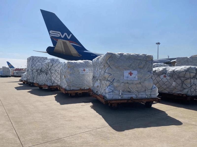 The shipment, which contains 20 tonnes of urgently needed cotton tents, departed from Shanghai Pudong Airport on Monday. The supplies will be handled by the Turkish Red Crescent Society and distributed to people in quake-stricken regions.