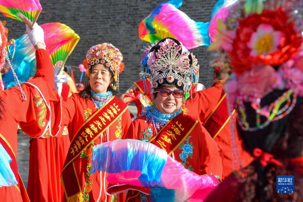 Photo taken on Feb. 20 shows folk artists performing the yangko dance to celebrate the Longtaitou Festival in Qinhuangdao, north China’s Hebei Province. (Xinhua/Guo Nan)