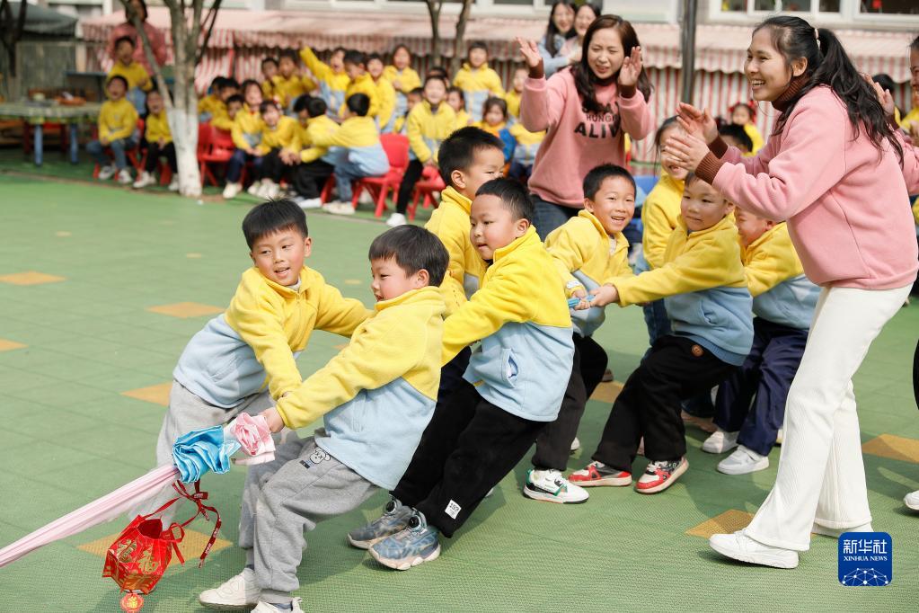 Photo taken on Feb. 20 shows children from a nursery school competing in a tug of war to celebrate the Longtaitou Festival in Jizhou district, Ji’an, east China’s Jiangxi Province. (Xinhua/Li Jun)