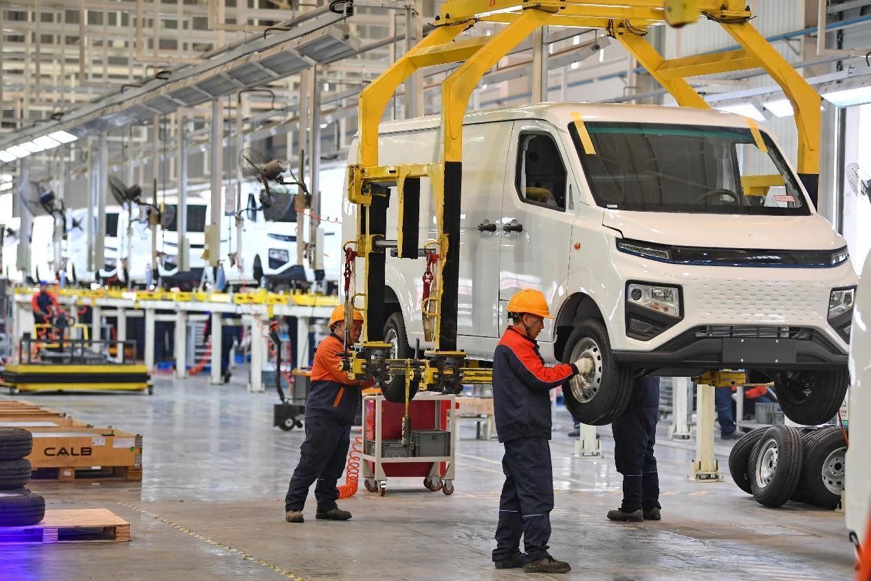 New energy vans are being assembled in a workshop in Jialing district, Nanchong, southwest China's Sichuan province, Feb. 9, 2023. (People’s Daily Online/Li Xiangyu)