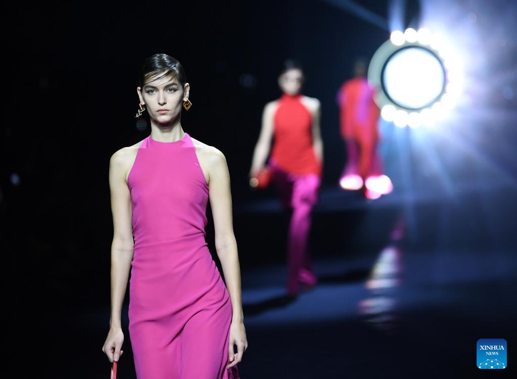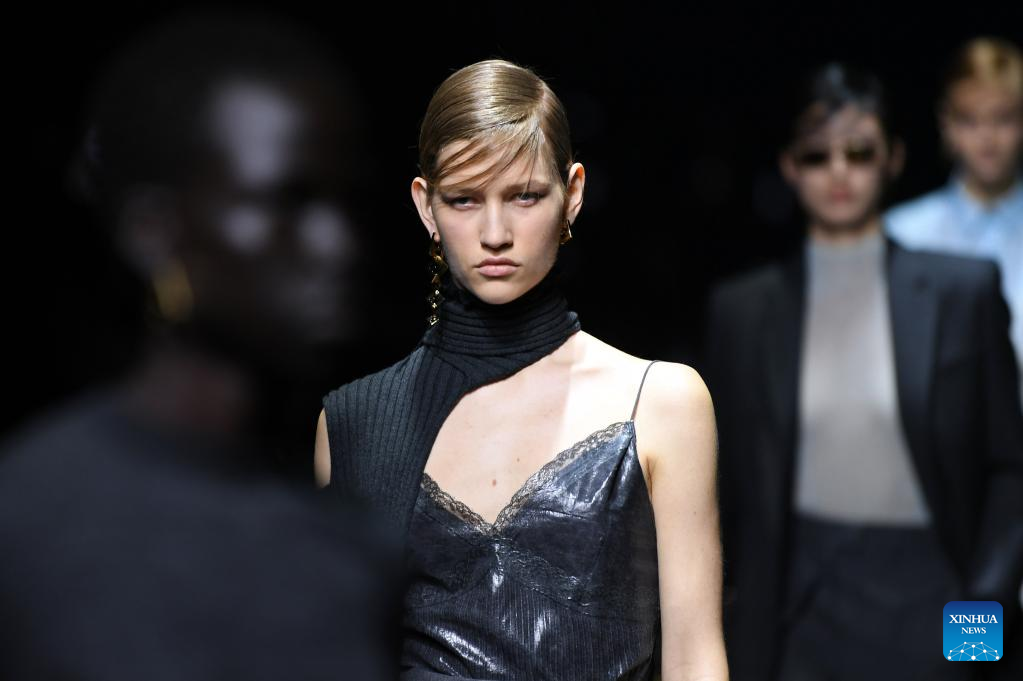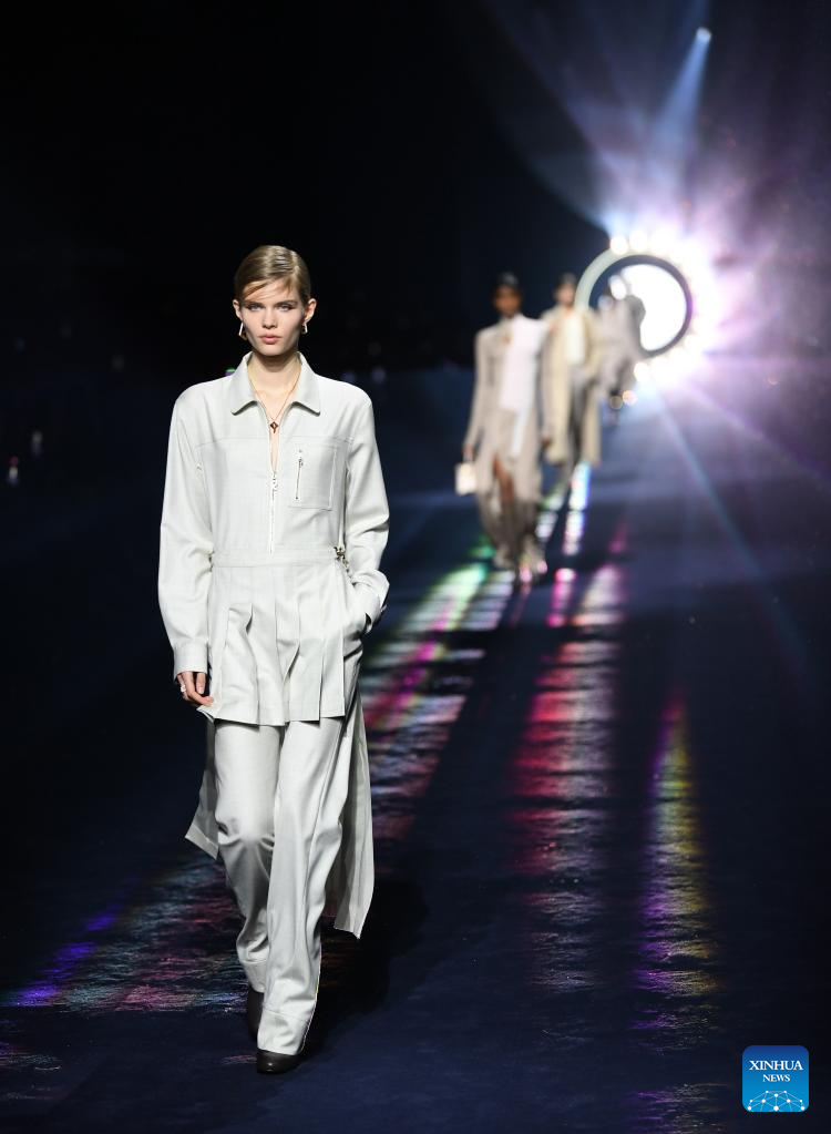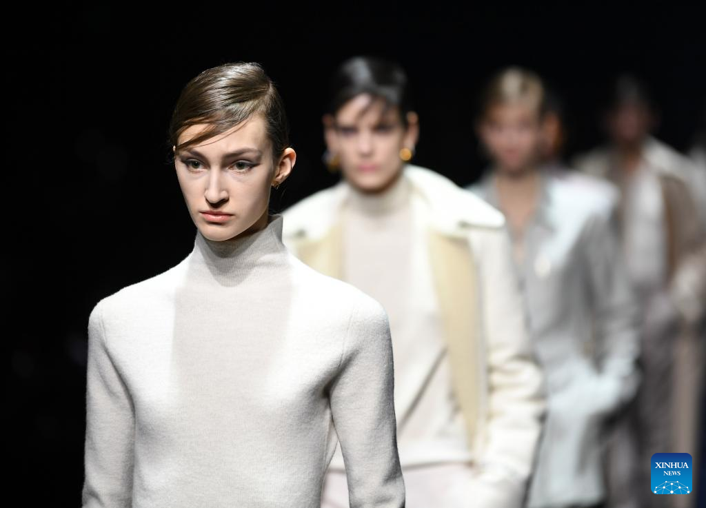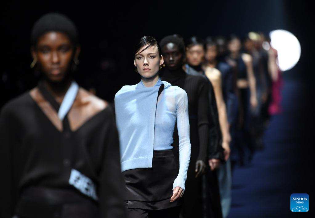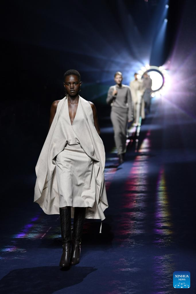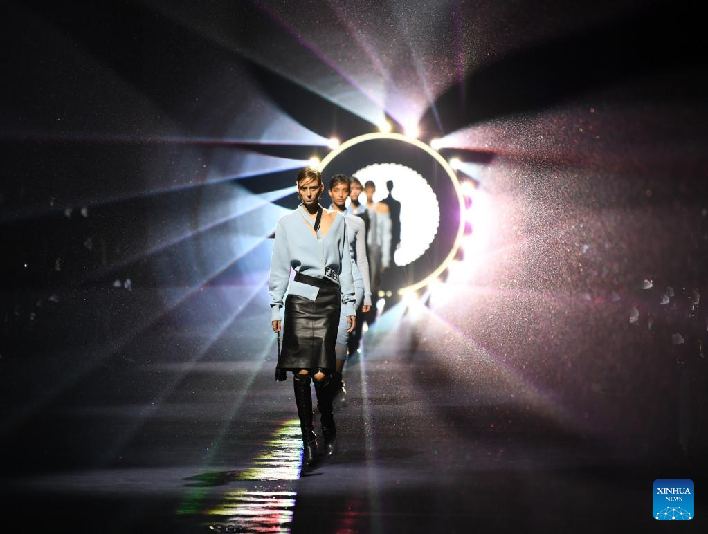 Models present creations from the Fendi Fall/Winter 2023/2024 collection during Milan Fashion Week in Milan, Italy, on Feb. 22, 2023. (Xinhua/Jin Mamengni)