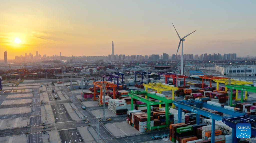 This aerial photo taken on Feb. 21, 2023 shows the full Internet of Things container terminal of Tianjin Port in north China's Tianjin.