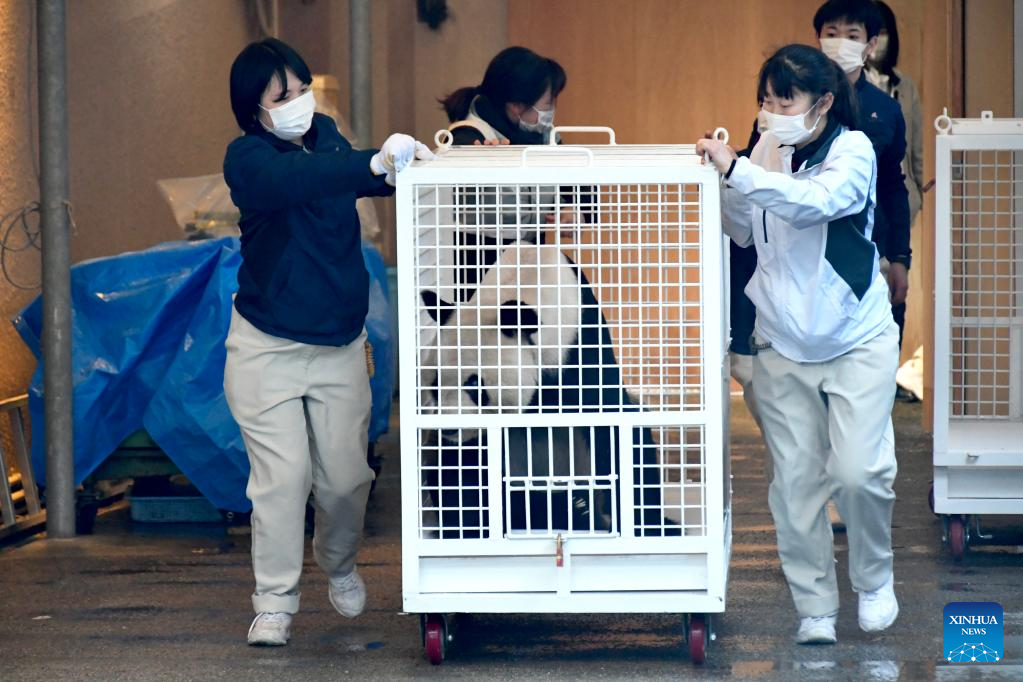 Prior to their departure, a farewell ceremony was held at the park on Tuesday afternoon, joined by a crowd of 2,000 visitors, and was livestreamed on YouTube for 13,000 viewers. (Xinhua/Yue Chenxing)