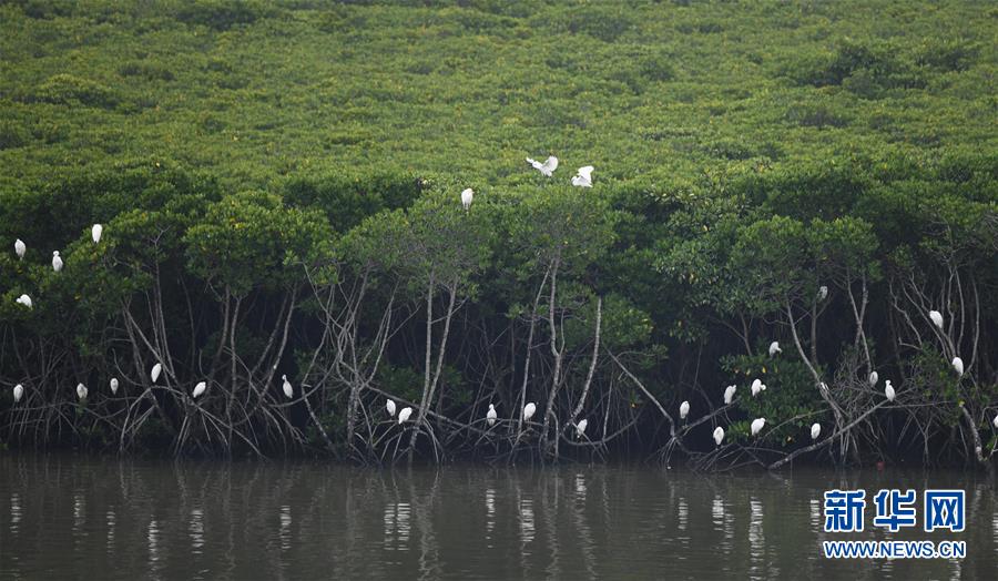 Photo shows egrets in the Dongzhai Port National Nature Reserve. (Photo/Xinhua)