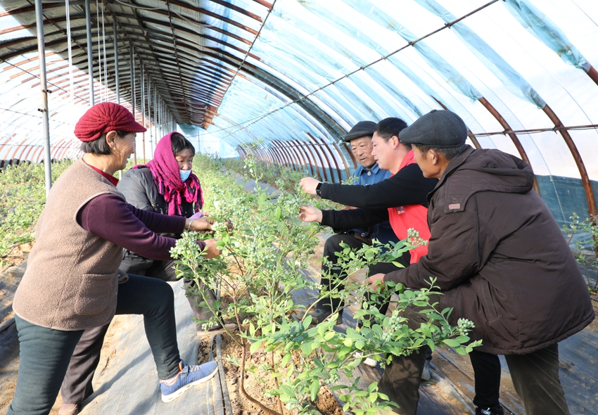 Volunteer technicians provide guidance for villagers on how to plant blueberries in Heilin township, Ganyu district, Lianyungang, east China’s Jiangsu Province. (Photo/Zhang Nanning)
