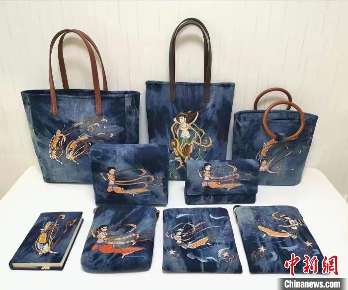 She has sharpened her skills since, and started to add some representative elements of Gansu, such as camels in the desert and flying apsaras in her works. She has also introduced tie-dying into her embroidery. “I created a series of works that consists of nine flying apsaras of the Dunhuang Grottoes, using the techniques of embroidery, tie-dying, and hand paintings, which won positive feedback,” said Xu.