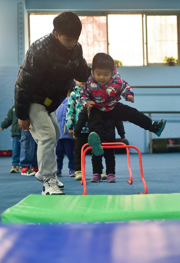 Children learn Taekwondo under the instruction of a teacher at Luoyang Youth Children’s Activity Center, in Luoyang city, north China’s Henan Province. (People’s Daily Online/Huang Zhengwei)