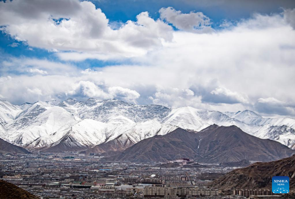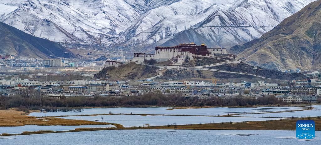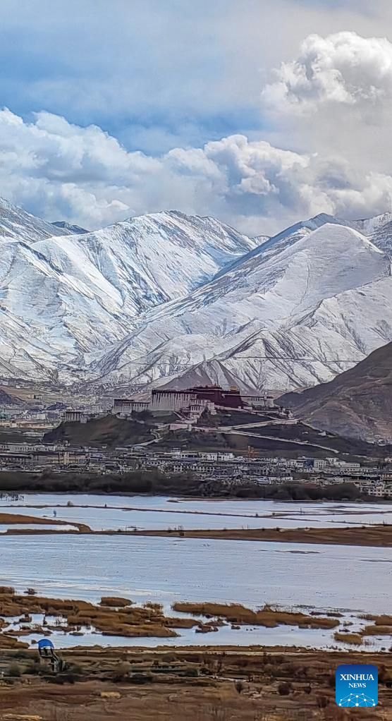 This photo taken on Feb. 24, 2023 show a view after a snowfall in Lhasa, southwest China's Tibet Autonomous Region. (Xinhua/Jigme Dorje)