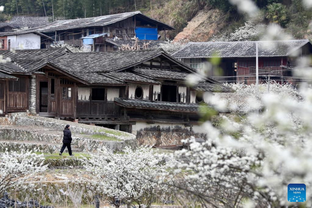Ancient villages attract tourists as plum trees in blossom in Yongtai County, SE China
